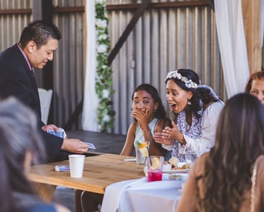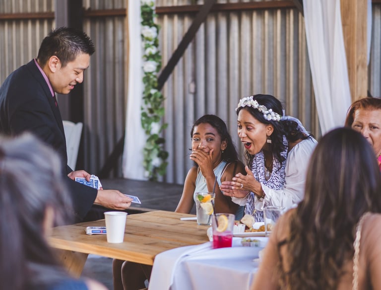 he was absolutely amazing! From start to finish, he was incredibly professional, approachable, and a joy to have at our event. His magic tricks were mind-blowing, and we loved how he effortlessly moved through the room, performing for guests and making everyone feel included.